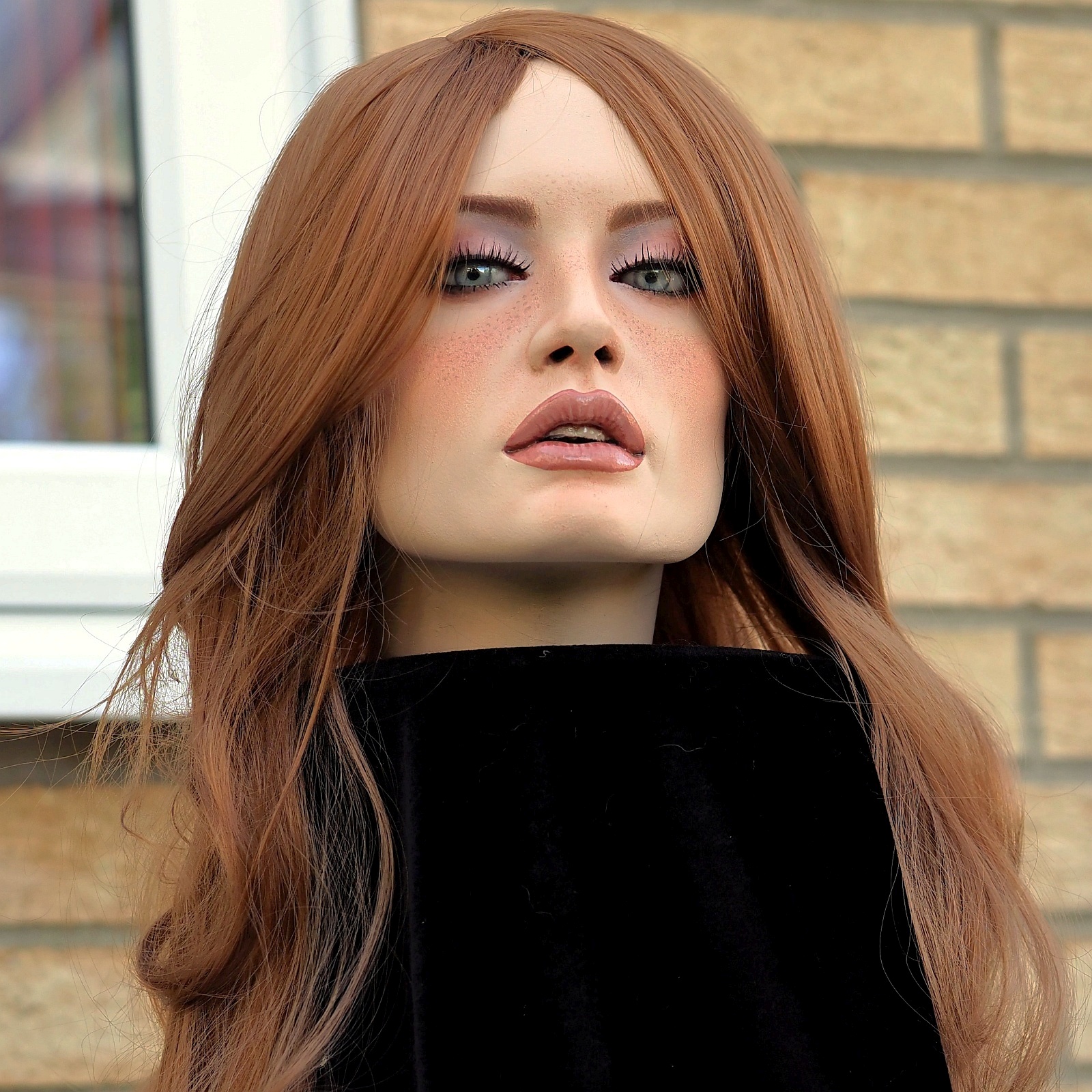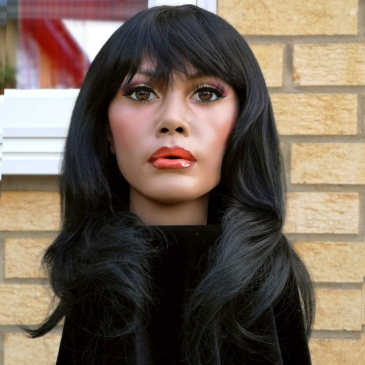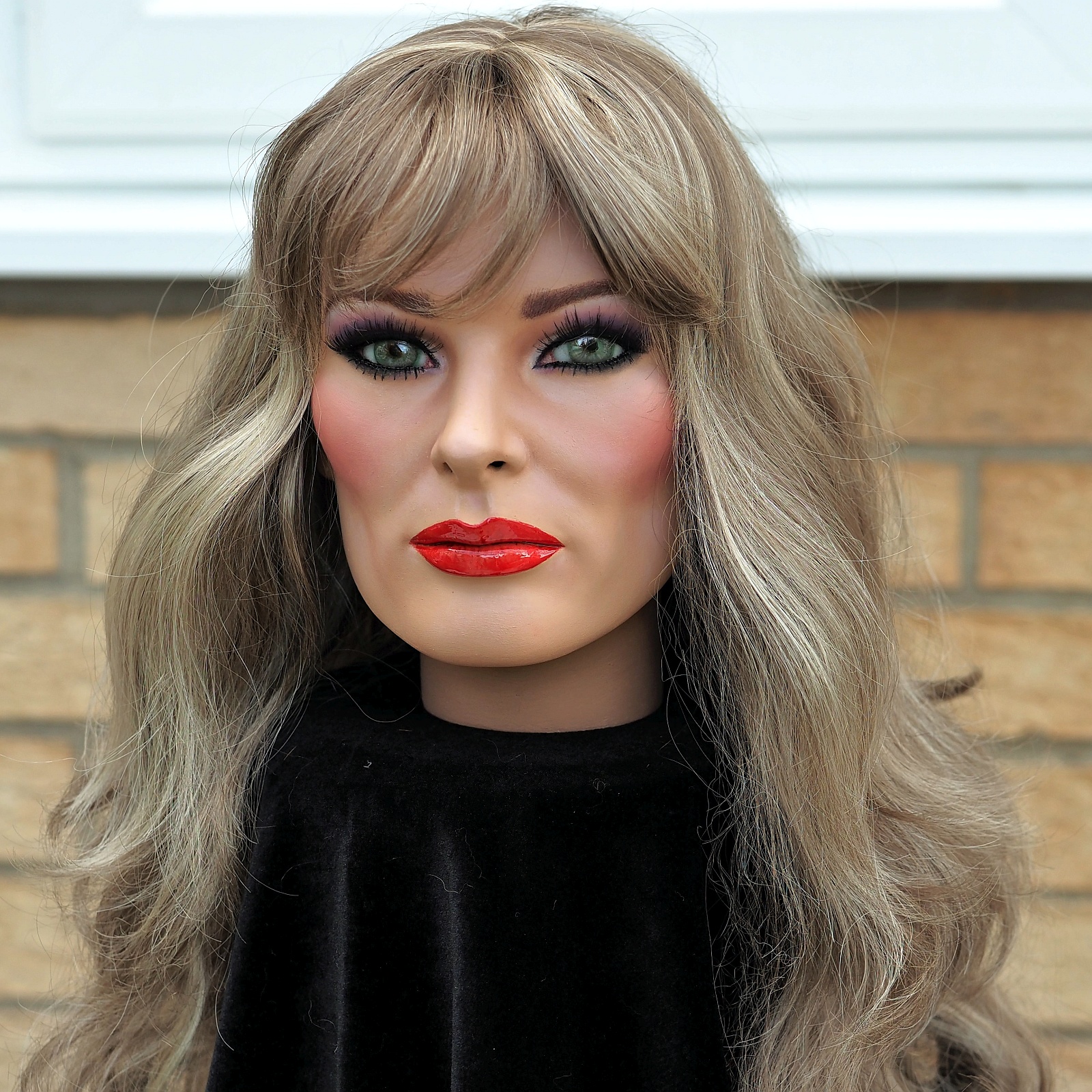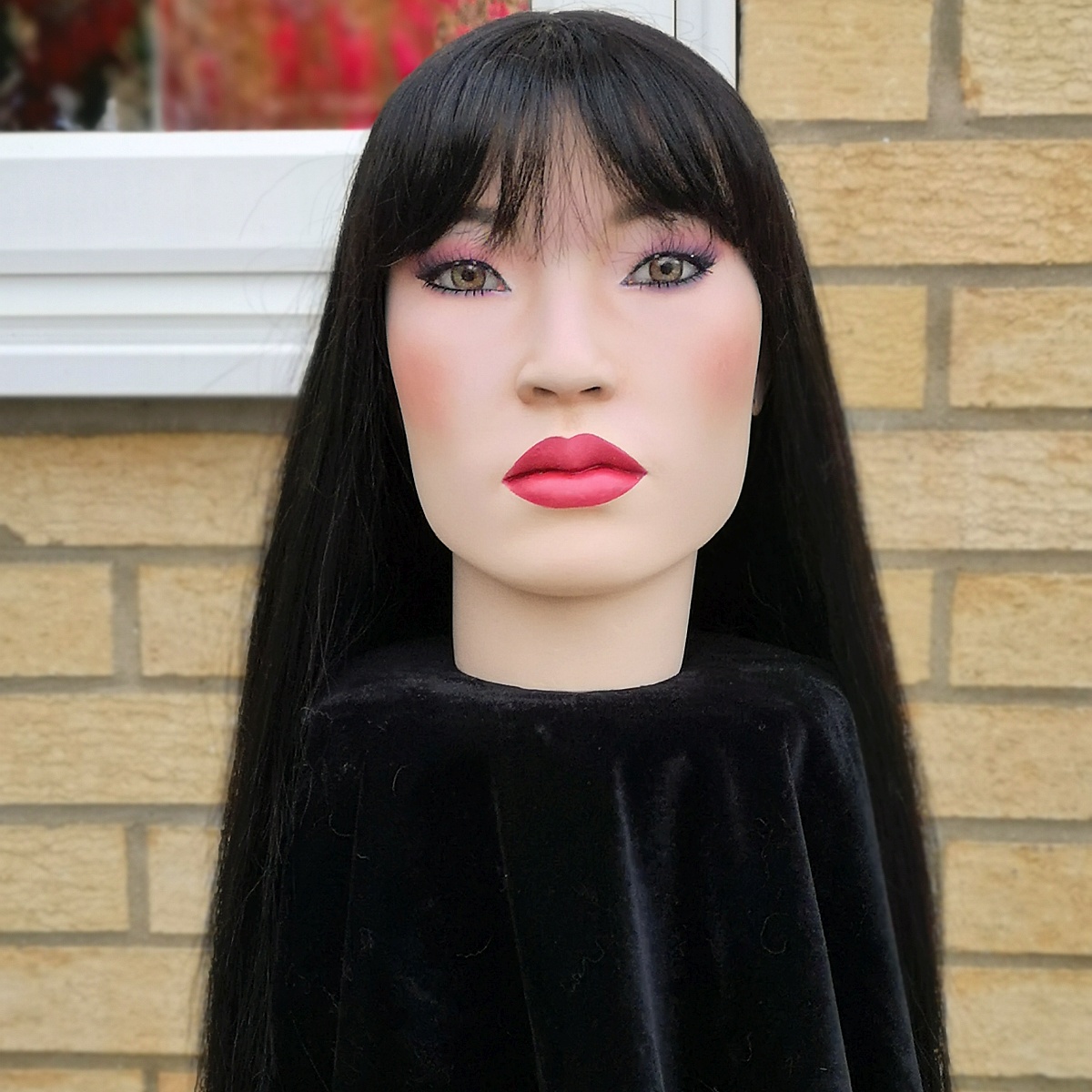 Hand-painted lips, eyeshadow, eyeliner, blush, eyebrows, and subtle facial shading