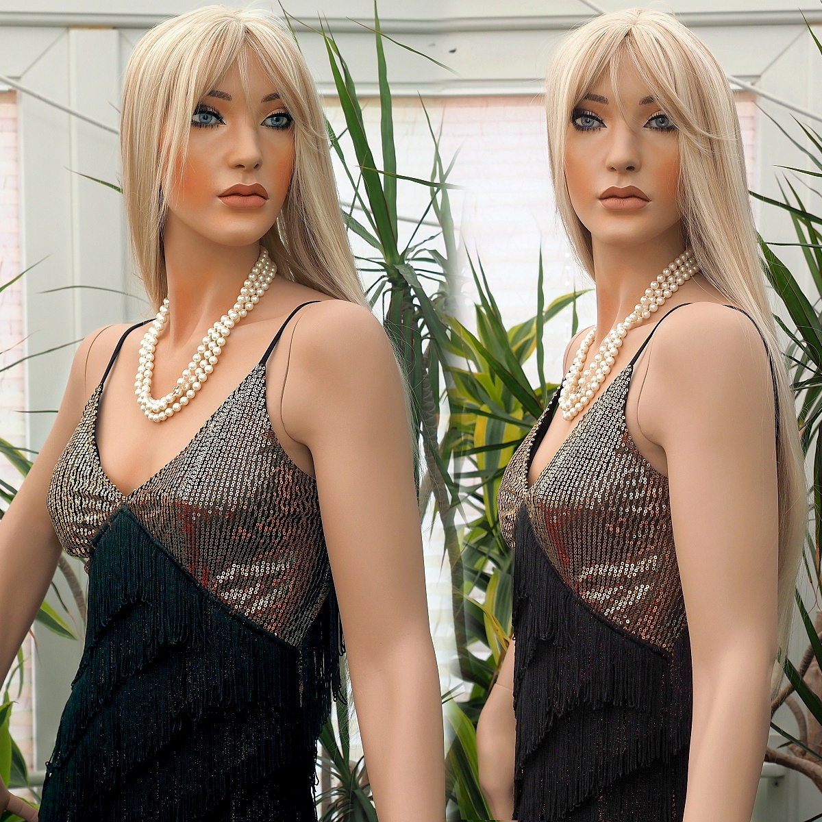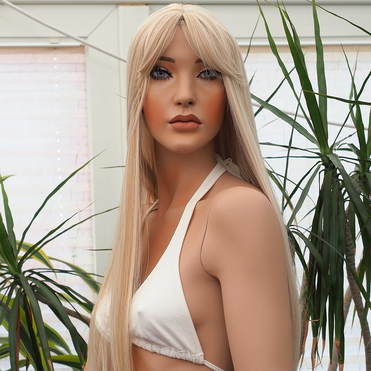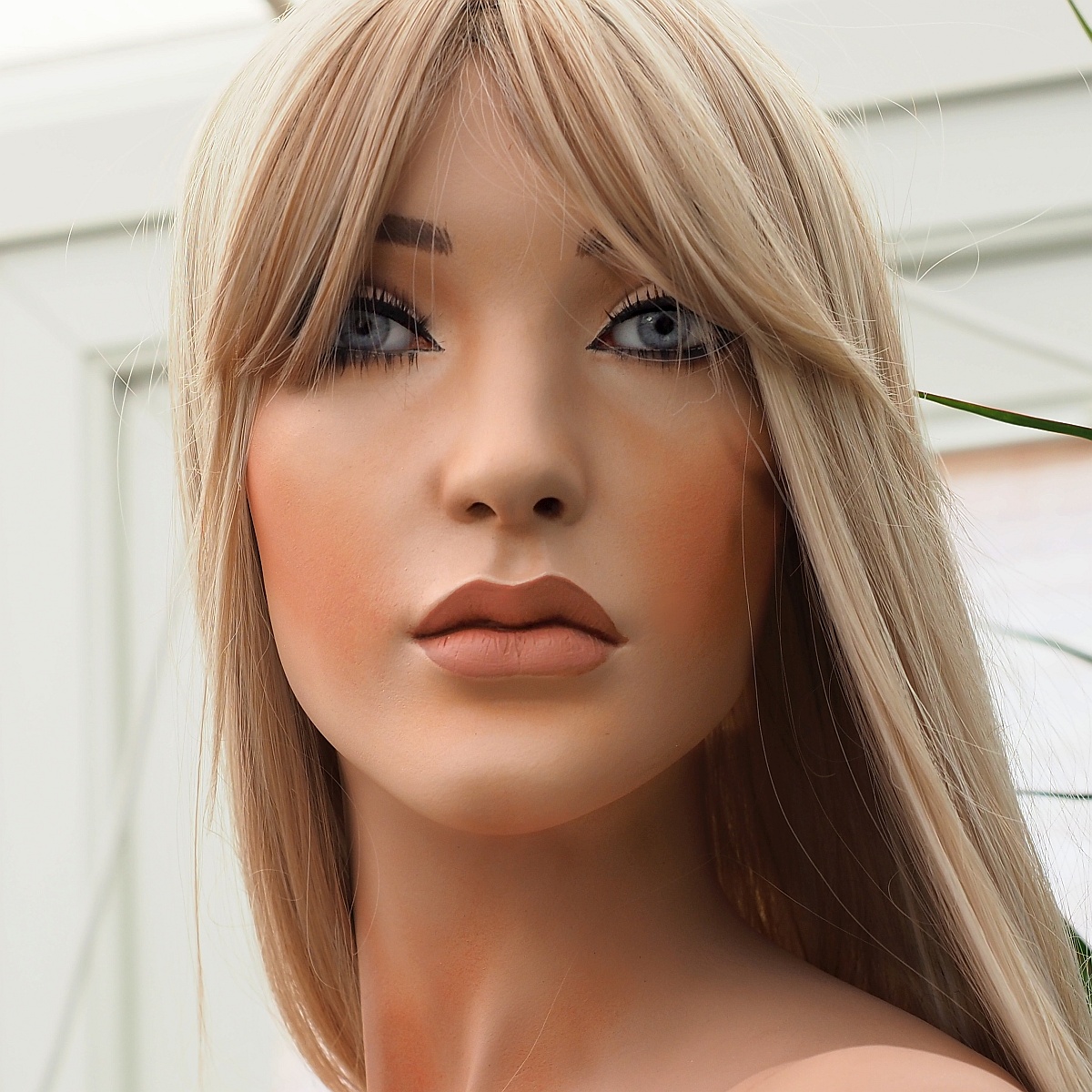 - Hand-painted lips, eyeshadow, eyeliner, blush, eyebrows, and subtle facial shading